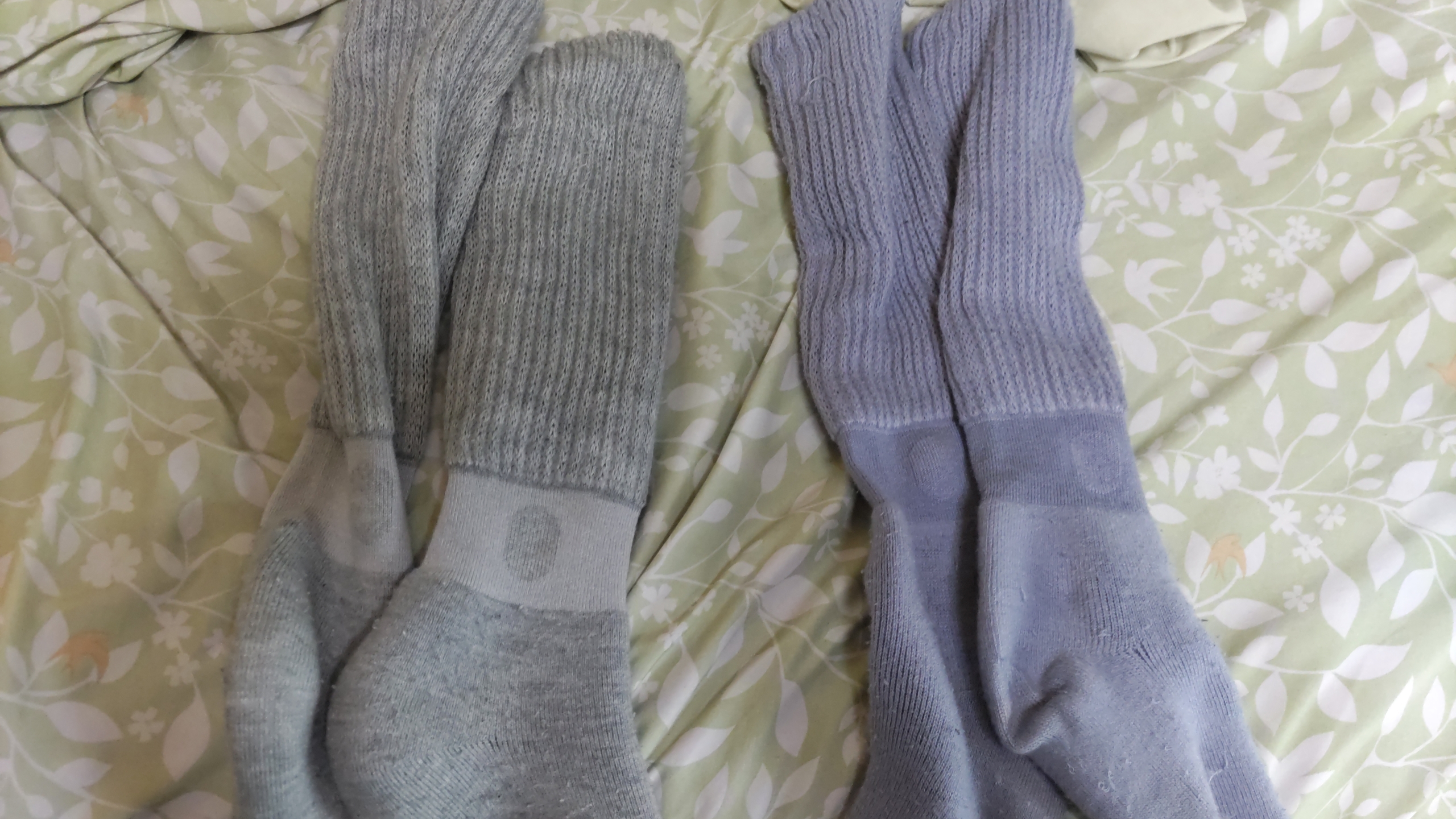 普段は足首のあたりでダラダラさせてるけど、おっさんだけどルーズソックス気分が味わえる。